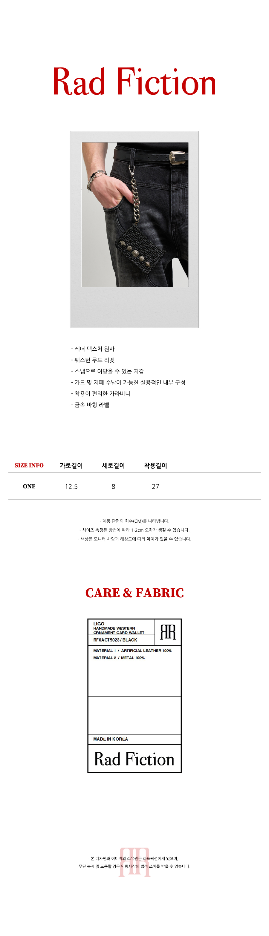 • 가죽 제품은 천연 가죽의 특성상, 주름 자국, 검은 반점, 미세한 스크래치가 있을 수 있으며 이는 반품 사유에 포함되지 않습니다.