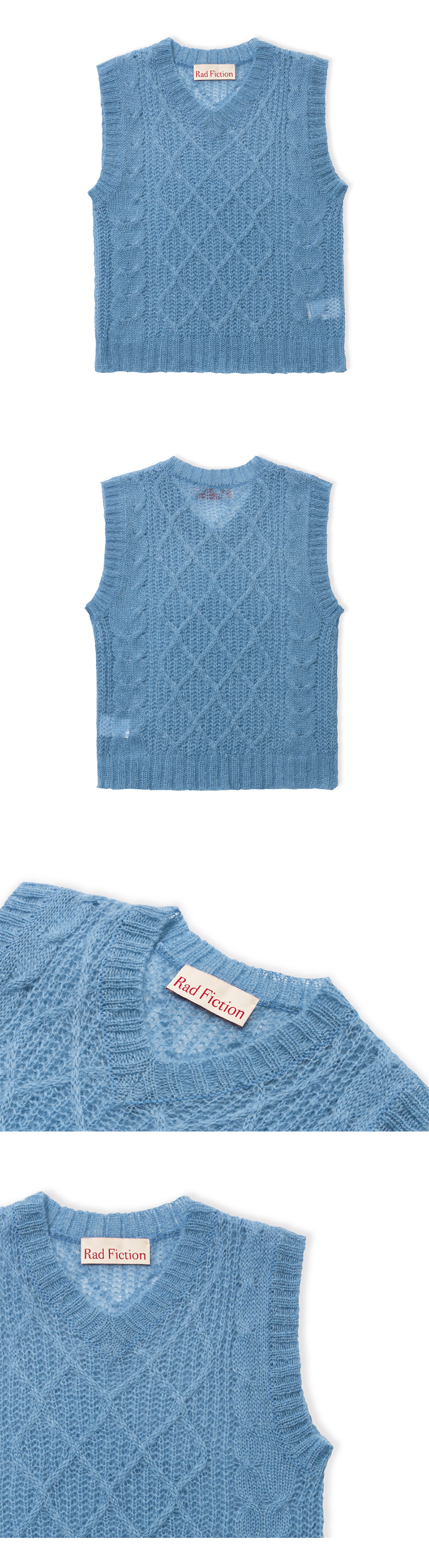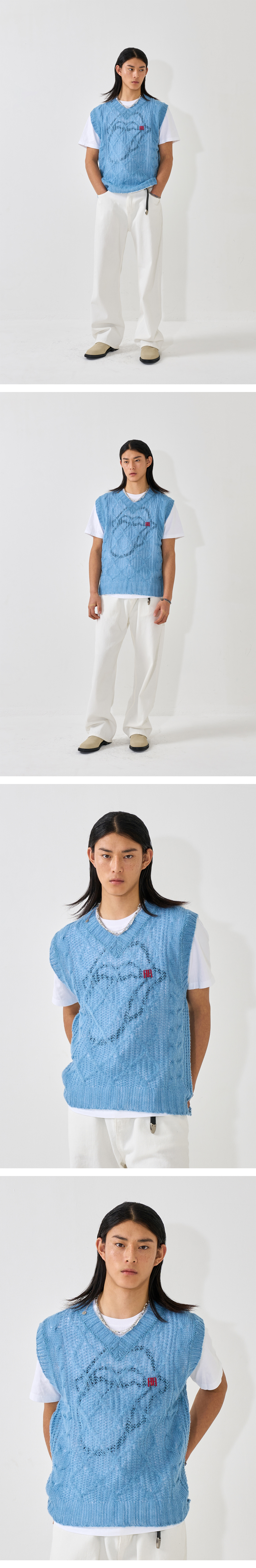DOHERTY FISHERMAN CABLE KNIT VEST / PALE BLUE