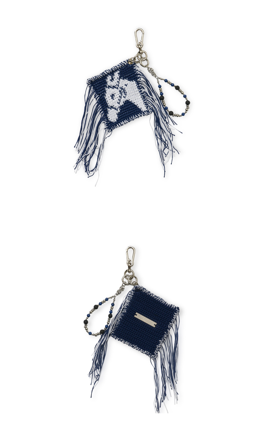 DUSTY HANDMADE HORSE CROCHET KEY RING / NAVY&WHITE