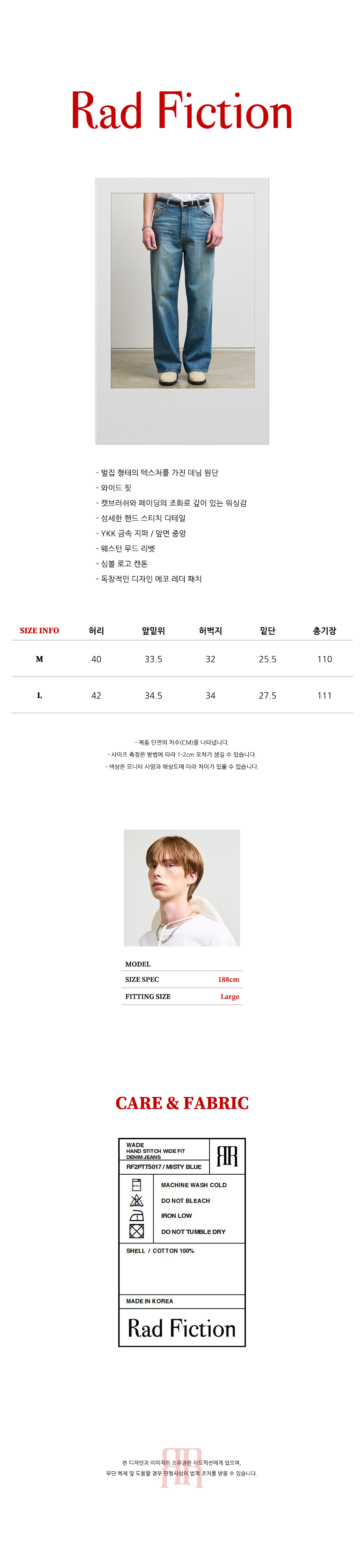 - 캣브러쉬와 페이딩의 조화로 깊이 있는 워싱감